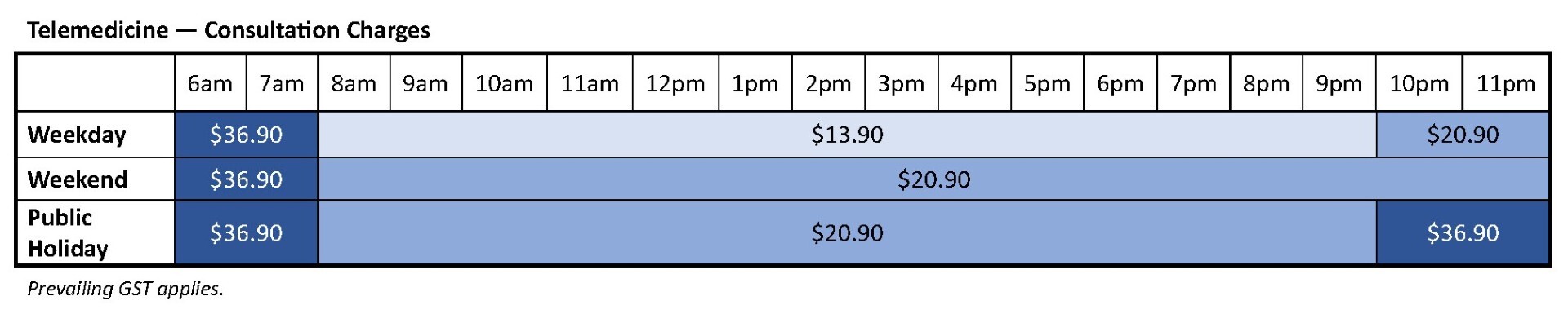 Tele-consultation is charged from $13.90 before GST.
